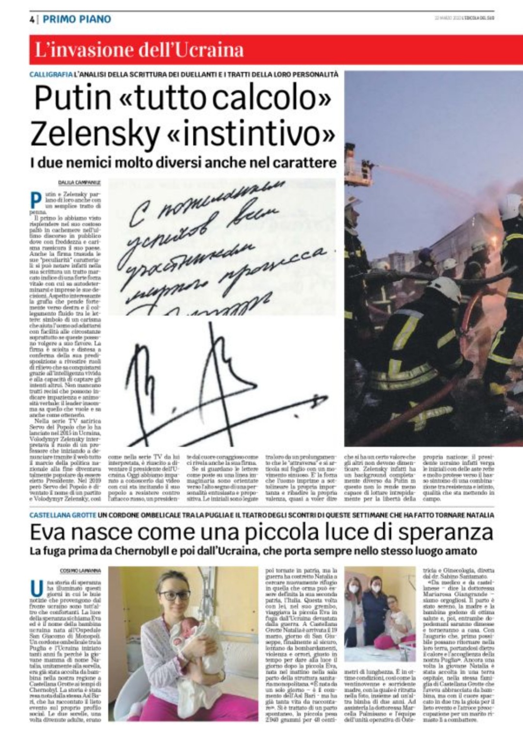 Putin e Zelensky parlano di loro anche con un semplice tratto di penna. L’analisi grafologica delle firme dei due presidenti che stiamo conoscendo nel corso del conflitto Ucrainia-Russia. Due personalità forti a confronto.